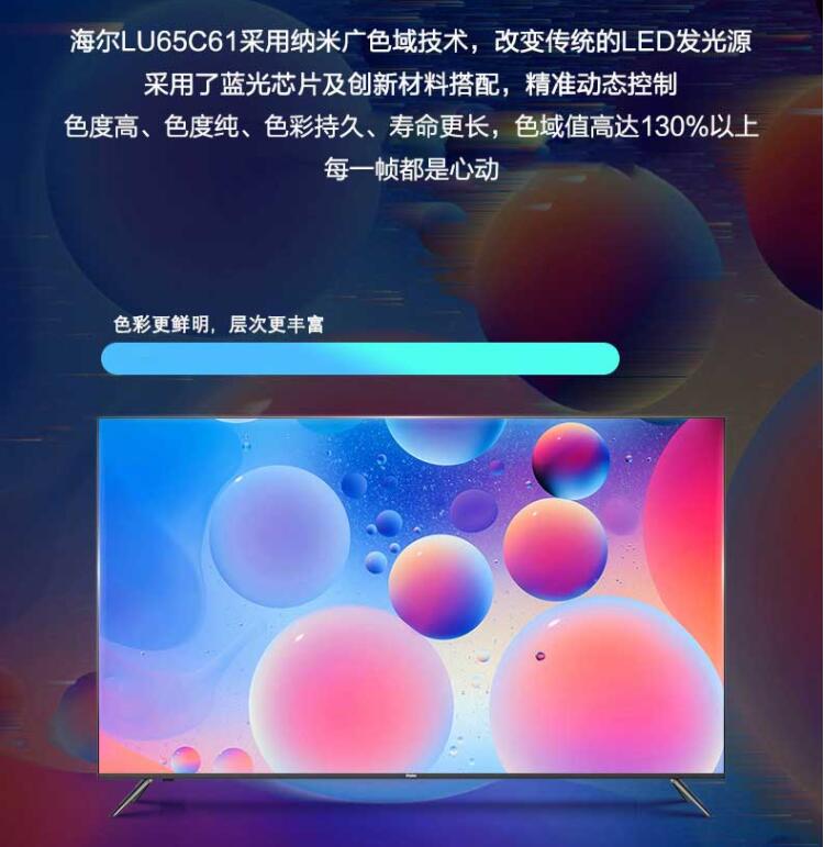 Haier/海爾 LU65C61 65英寸全面屏4K超高清智能網絡液晶電視機