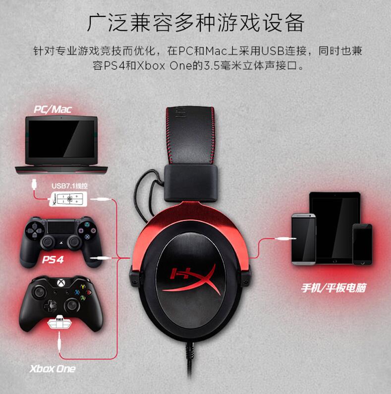 金士頓HyperX Cloud II颶風(fēng)2 頭戴式電競(jìng)游戲耳機(jī)7.1有線吃雞耳麥